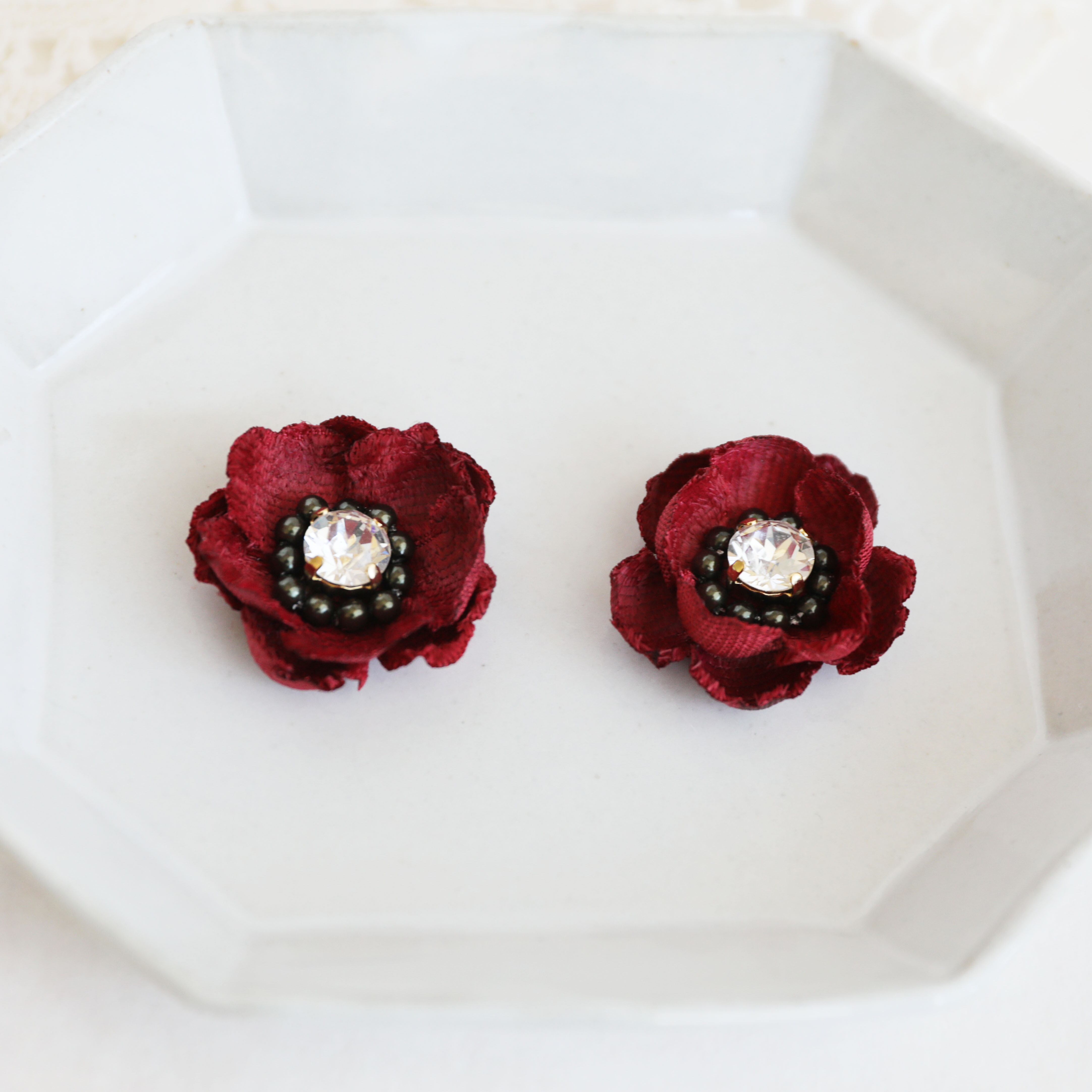 【布花】Anemone × ビジュー (Red) ピアス・イヤリング