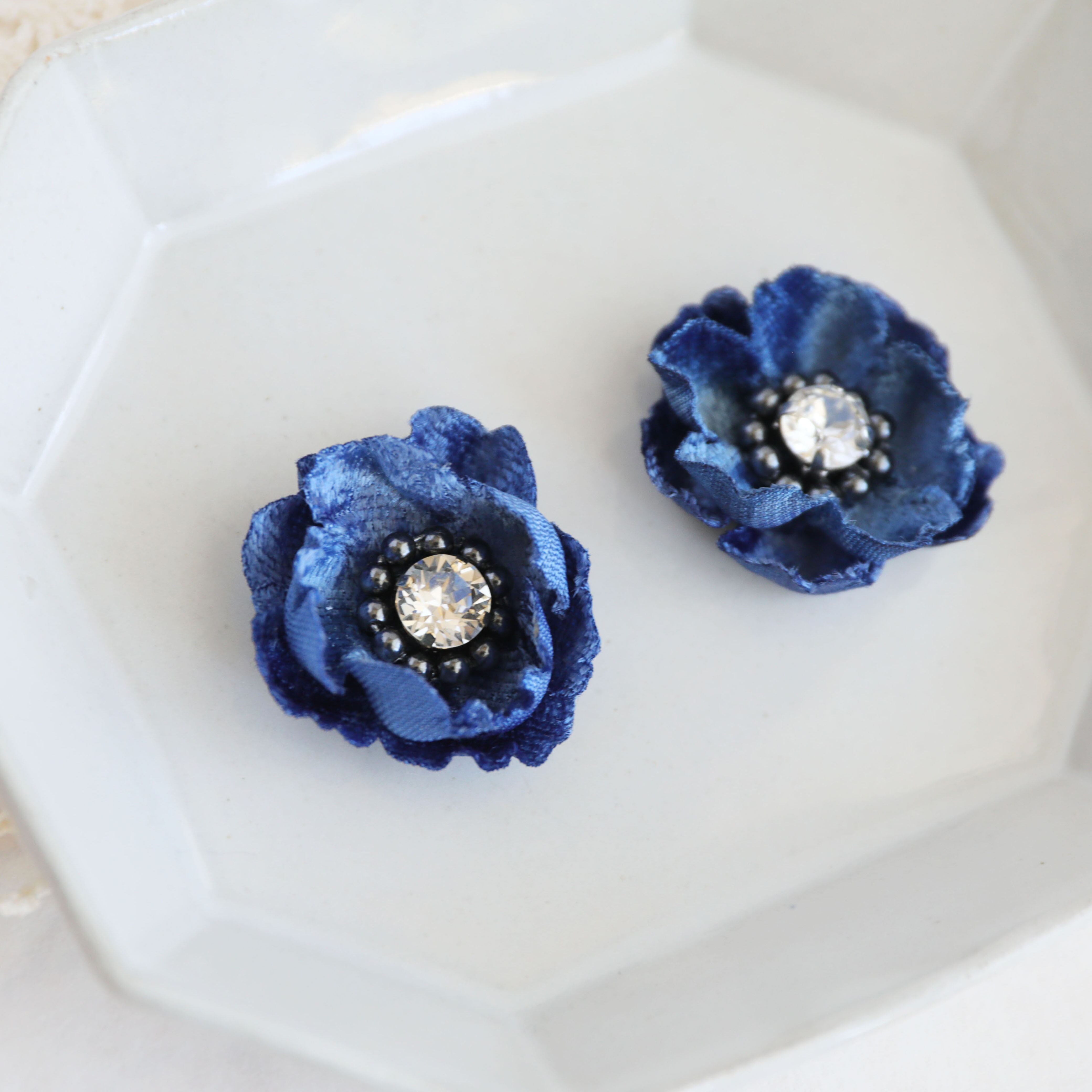 【布花】Anemone × ビジュー(ブルー) ピアス・イヤリング