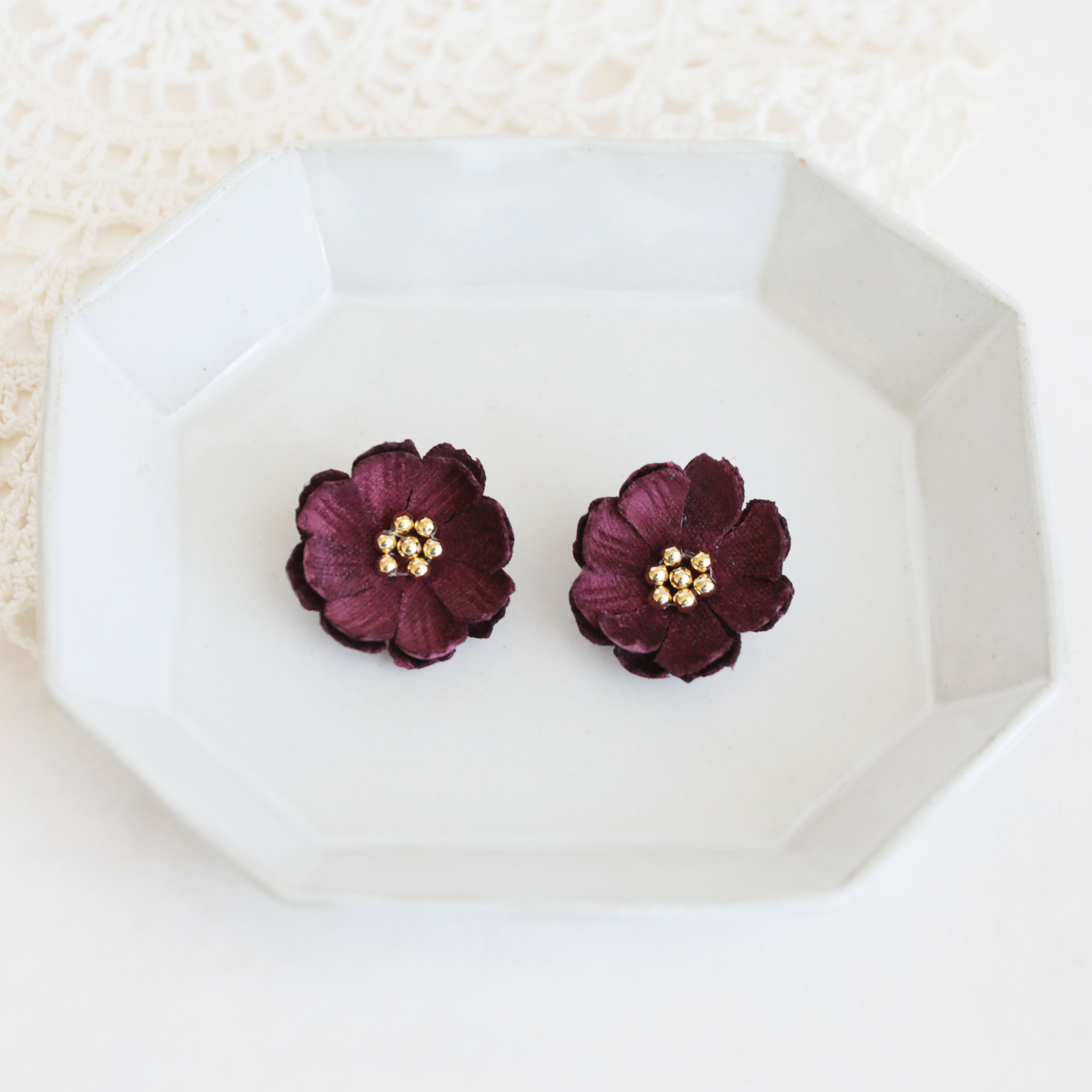 コスモスをモチーフにした大人っぽい布花の耳飾りです。