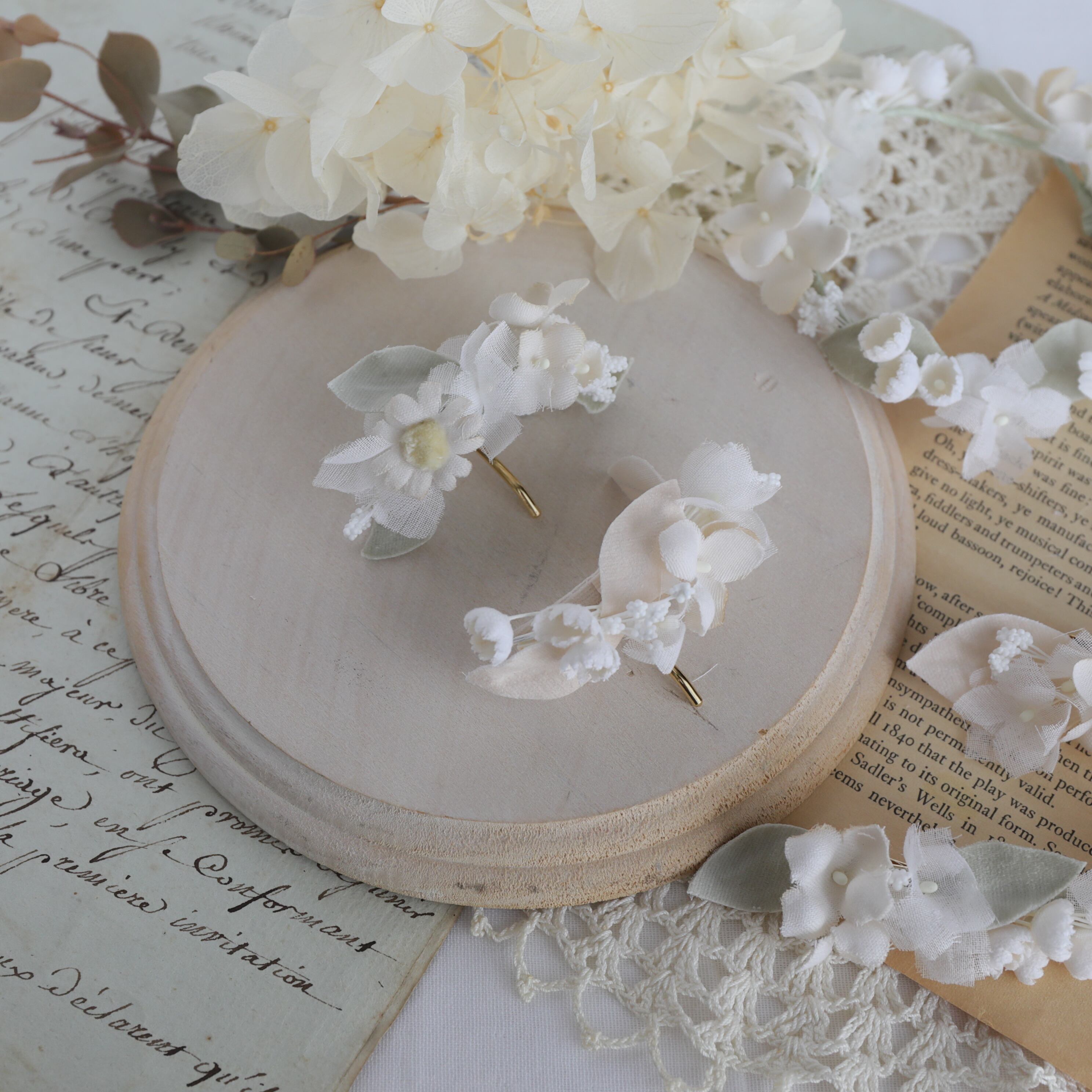 【布花】ナチュラルブーケ(ホワイト) ポニーフック