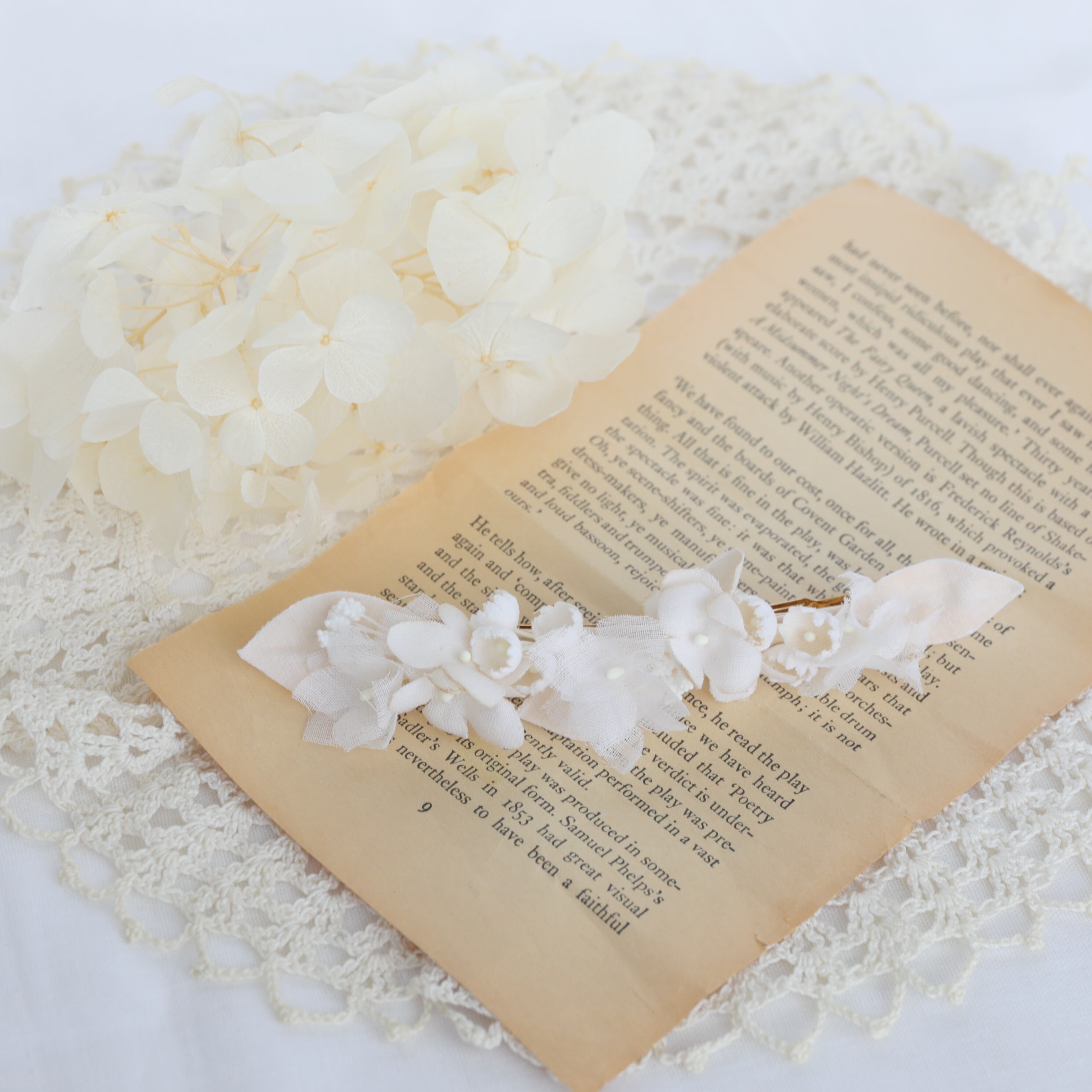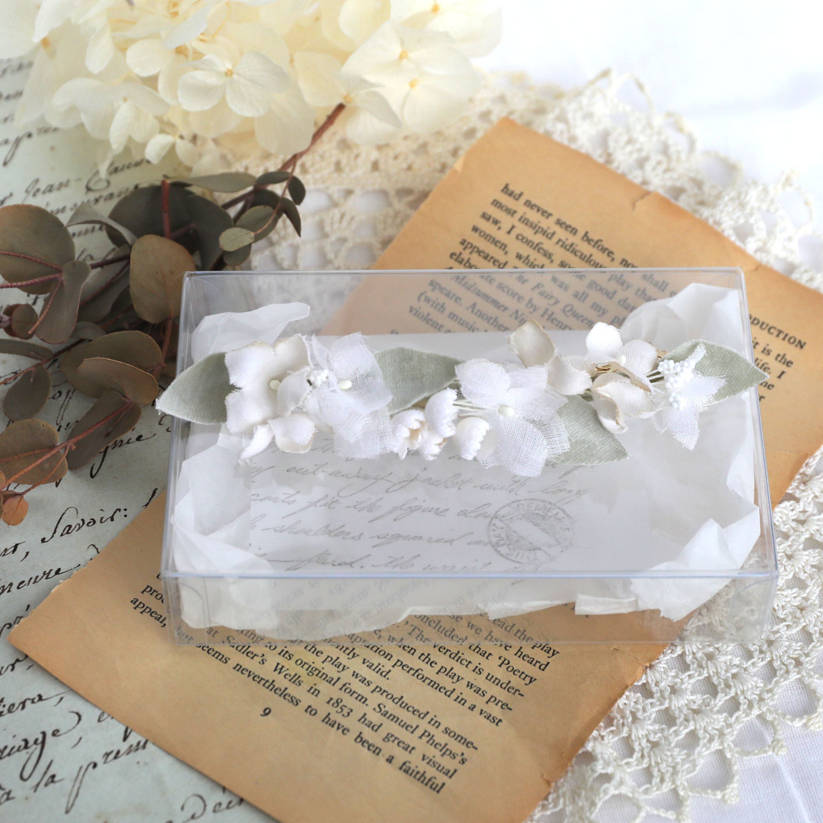 【布花】ナチュラルブーケ(ホワイト) 細バレッタ